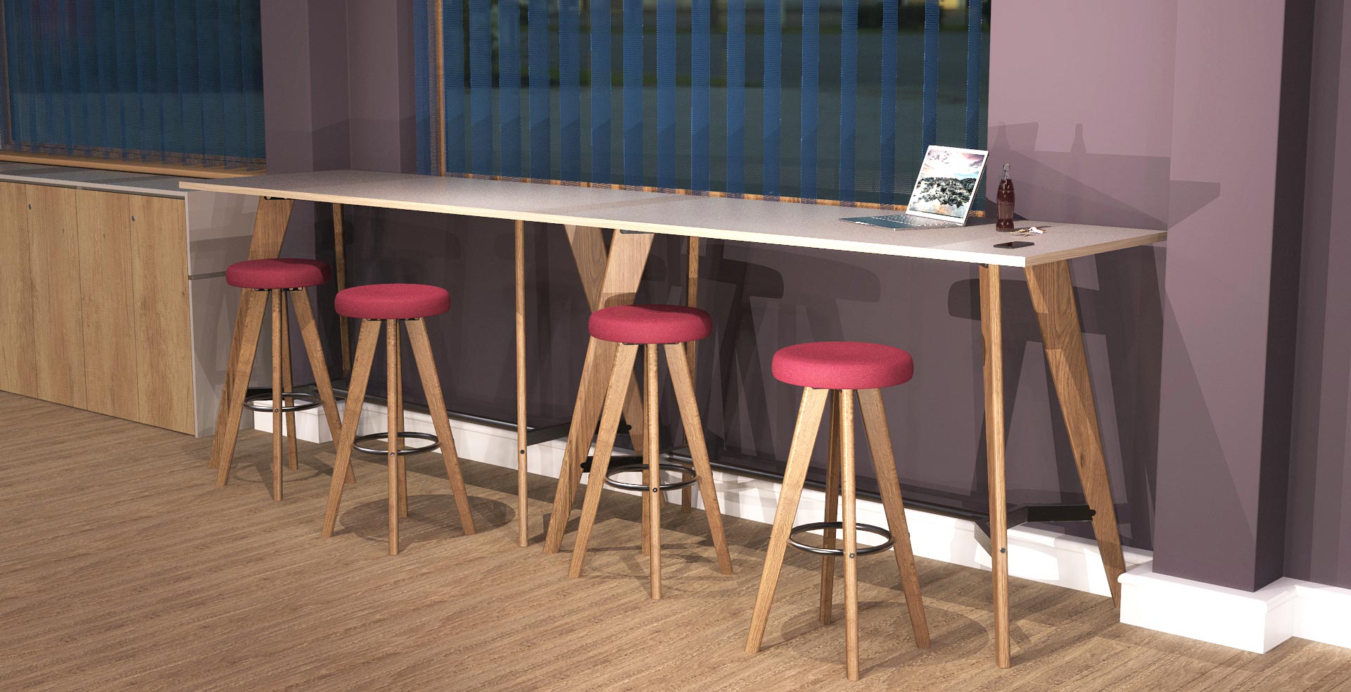 If your employees prefer to stay inside during their breaks, instead of exploring Romford, you’ll need to ensure they have some practical furniture in their breakout room. Our benches and stools are customisable so that they will match your office design. We have several styles and colours available, from white minimal benches to more vintage stools. We also offer tables of different sizes and heights to fit the requirements of your team.